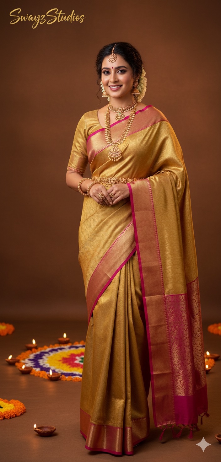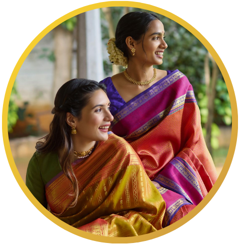 Experience the richness of traditional Kanchipuram silk sarees, woven with heritage craftsmanship and luxurious silk threads.